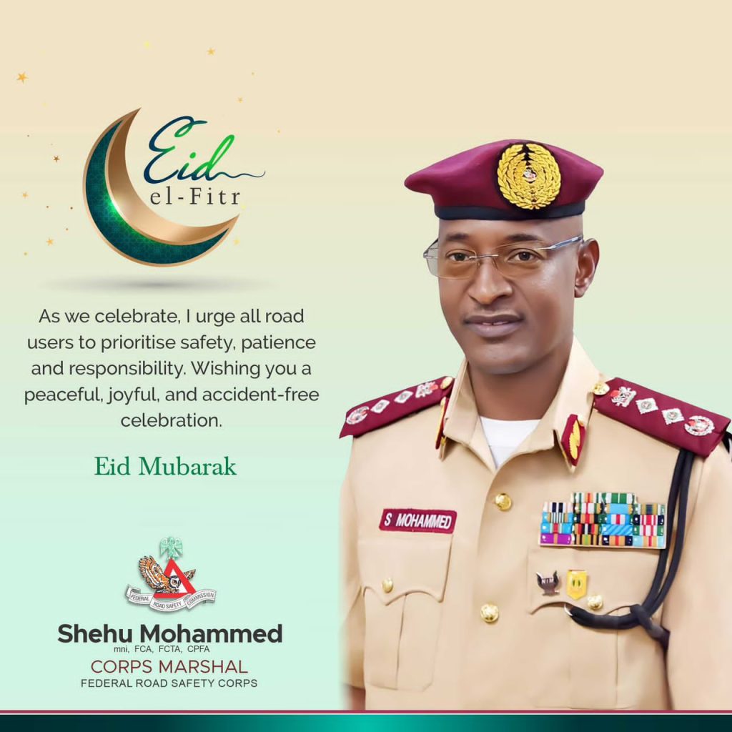 The Corps Marshal, Federal Road Safety Corps (FRSC), Shehu Mohammed, has congratulated the Muslim Ummah on the successful completion of the Ramadan fast and the celebration of Eid el Fitri, as declared by Saad Abubakar III, President General of the Nigerian Supreme Council for Islamic Affairs.